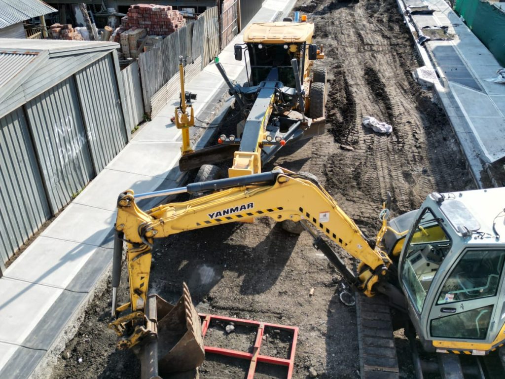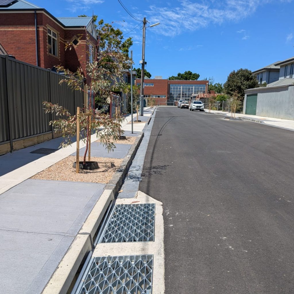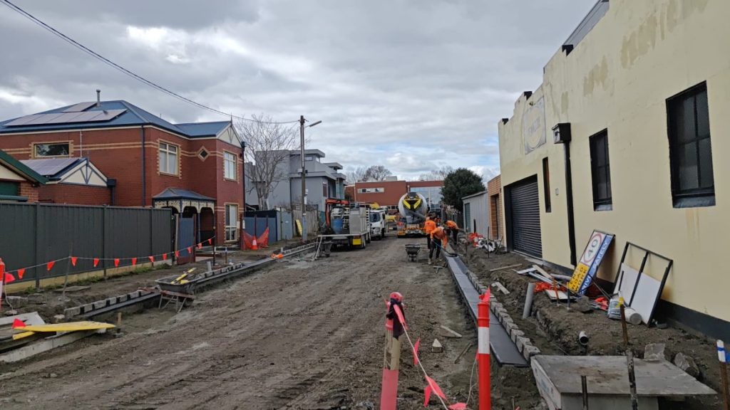 Key construction activities include the installation of drainage systems and pits, ensuring effective stormwater management. The project also features the construction of bluestone kerbs and concrete channels, to maintain the area’s historical character.